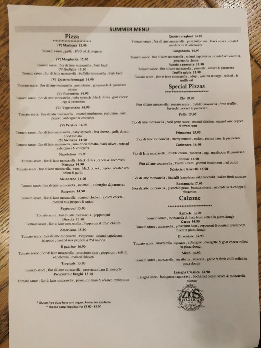 Welcome to Zio's Pizzeria, a quaint gem located at 34 Station Rd, Harpenden. This family-run eatery embraces its Italian roots, offering a menu that captivates both the heart and palate. The warm atmosphere greets diners, reflecting a true Italian familial vibe.